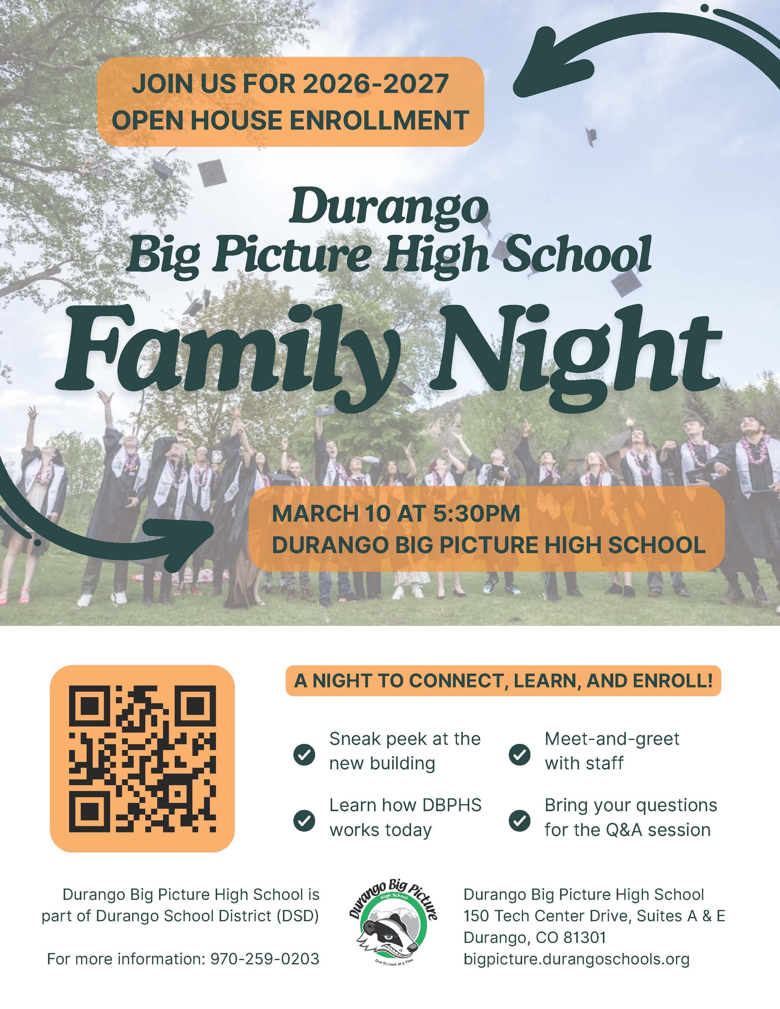 At Durango Big Picture High School (DBPHS), learning is built around your interests, goals, and future. Our new, permanent building opens August 2026. We’re moving into a newly renovated, district-owned space designed for Big Picture learning – more room to create, collaborate, and connect. Questions? Call (970) 259-0203.
